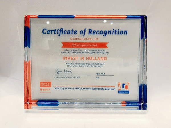 BYD is the only Chinese automotive company to be awarded the "Invest in Holland" certificate