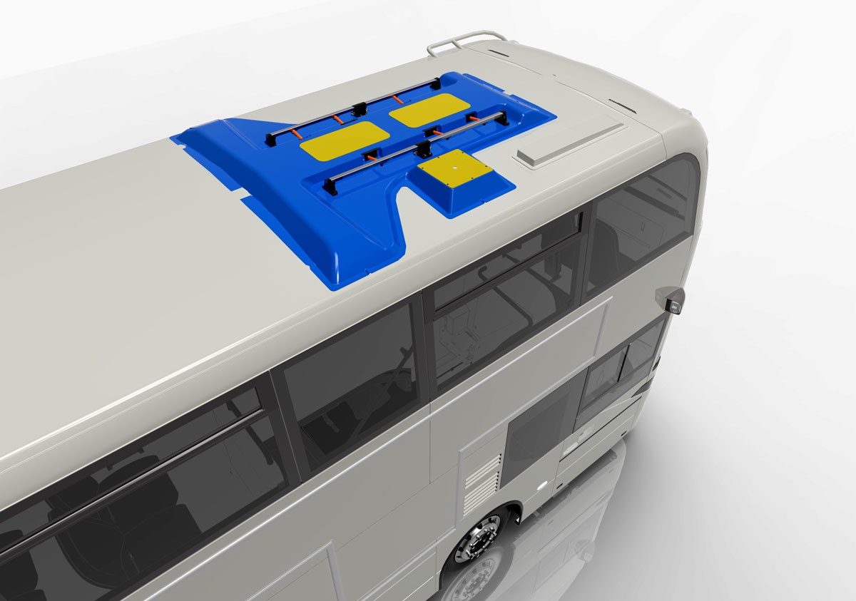 Although their battery range comfortably covers many all-day duties, high-power opportunity charging can further increase operational flexibility of the BYD ADL Enviro400EV double decker, which can now be specified with roof-mounted rails to connect with pantographs built to the international OppCharge standard, which are lowered from their gantry to the vehicle’s roof. BYD’s Battery Thermal Management System (BTMS) is also installed with the capacity to deliver a peak charging power of 300kW for rapid recharge of batteries, although it may also be used at lower power in bus depots where infrastructure constraints prevent the installation of plug chargers next to the vehicles’ parking positions. BTMS is a liquid-cooled, emissions-free technology designed to maintain an optimum battery temperature and, therefore, maximum efficiency for the vehicle.
